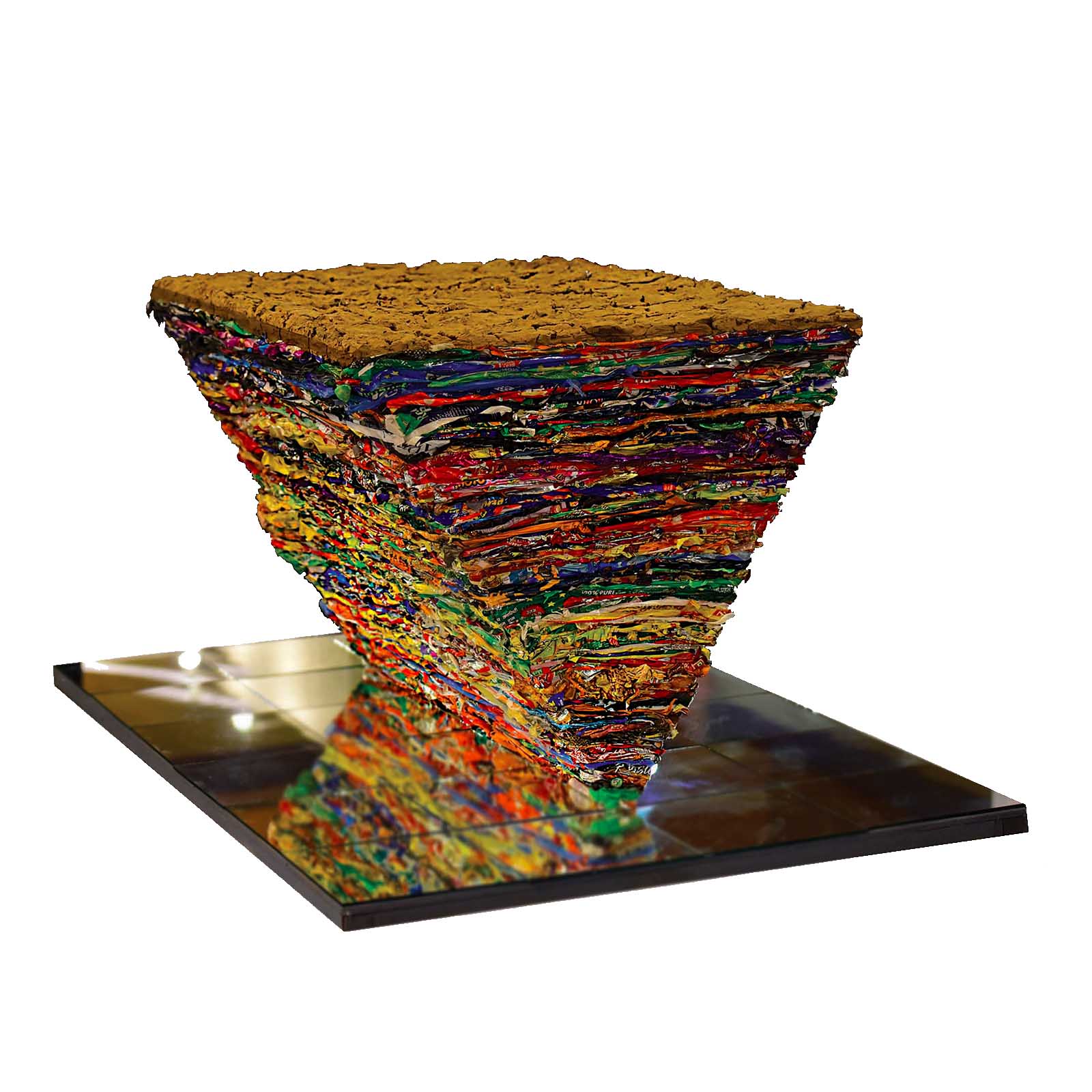 Plastic is a cheap and convenient material for us. But we ended up creating plastic hell landscapes. Being a devout lover of nature, I illustrated the serene beauty of nature in my paintings. However, I realized that I had been only depicting nature in my paintings. My efforts didn’t materialize into anything that actually helped the environment heal from the effects of our environment destruction. So, in order to make an impact full effort and enliven my ideology, I decided to use plastic itself to create artworks and more than 2 metric ton MLP and 1 metric ton PET plastics I have been upcycled into artworks. says the artist.