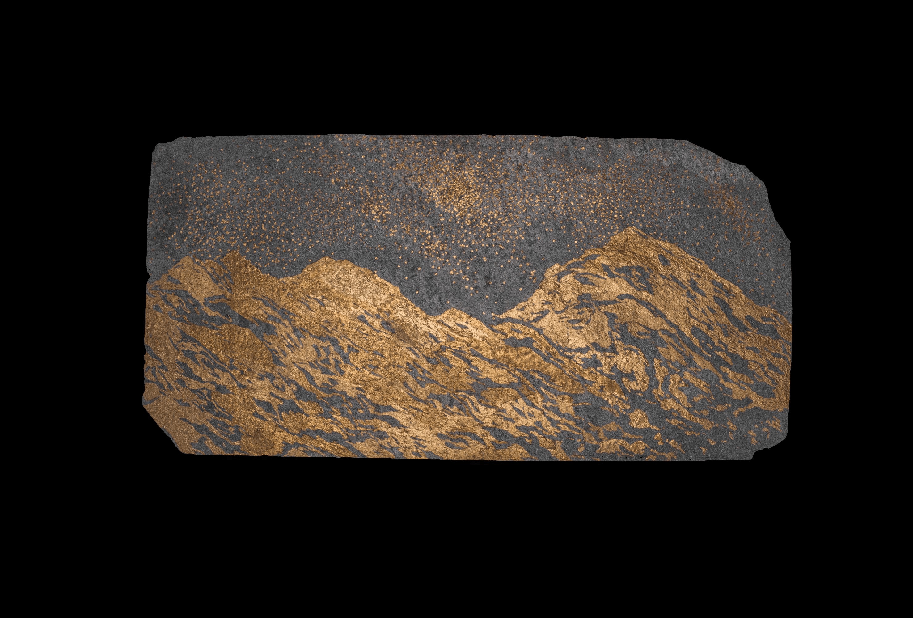 Working on the slates came from the necessity of materials. Hemangini developed an interest towards slates and plates from the rural hamlets during her stay in the Himalayan mountains throughout the first wave of covid in 2020. Slate became a metaphor for the depredations of the mountain environment that she personally witnessed during the time of her sojourn, as these matters were being mined from mountain bodies incessantly to feed the growing luxury markets of India. Little concern was being paid to the delicate ecological balance that was being disrupted in this quest for raw materials to feed insatiable markets and blind growth. The mountain was not seen as the bringer and preserver of bounty - rain, forests, animals and humans. It was seen purely as a means to an end - by a few, for a few!